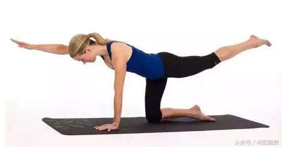 2、臀部用力,边吐气边尽量抬高其中一只脚,脚要保持伸直,静止1秒钟。再回到动作1,依相同步骤抬起另一只脚。左右交替连续做15-20次。