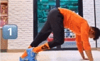 训练者保持下犬式姿势,收紧核心肌群保持身体稳定,然后控制上肢静止,双腿向后伸直,前脚掌抬起做交替抬脚跟训练,感受小腿有极强的拉伸张力。