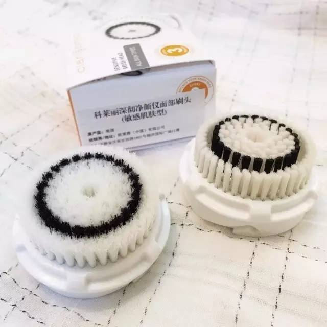 【敏感刷头】,是套装里自带的刷头,短毛,偏硬,但上脸没有刺痛不适。建议隔一天使用一次。