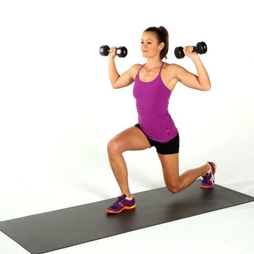 第四个动作,弓步哑铃抬举