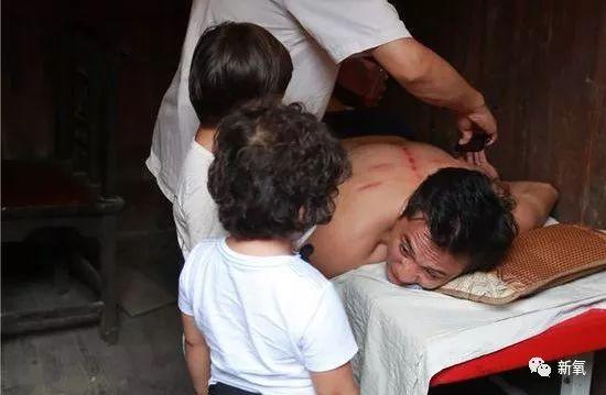 在《爸爸去哪儿3》里,刘烨也体验了刮痧。