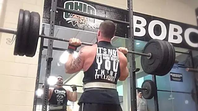 而进行反向弹力带深蹲,你所需要的就是一个深蹲架,还有一对弹力带。首先一定要选择一个适合你的弹力带。这对弹力带可以能够承受你的大负重的15%~20%的重量佳。如果你的身体底线是110千克的话,而加上这对弹力带,你就可以完成120~130千克的深蹲,我们在这里只是估了一个大致的数值,这个数值不需要太过于准确。而在我们的深蹲中使用反向弹力带的话,可以更容易的把握自己的训练,可以进行多种次数的训练范围来练深蹲,5次到10次就可以。