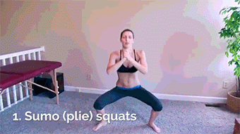 像蹲马步一样,大腿前侧会酸,这个时侯也能加上微幅的内外侧摆动,运动大腿内外侧的肉肉,连续5次,每次1分钟。