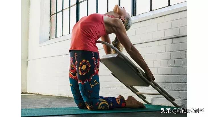 可以借助瑜伽椅练习将瑜伽椅抵在墙面椅子把手放在腰椎段