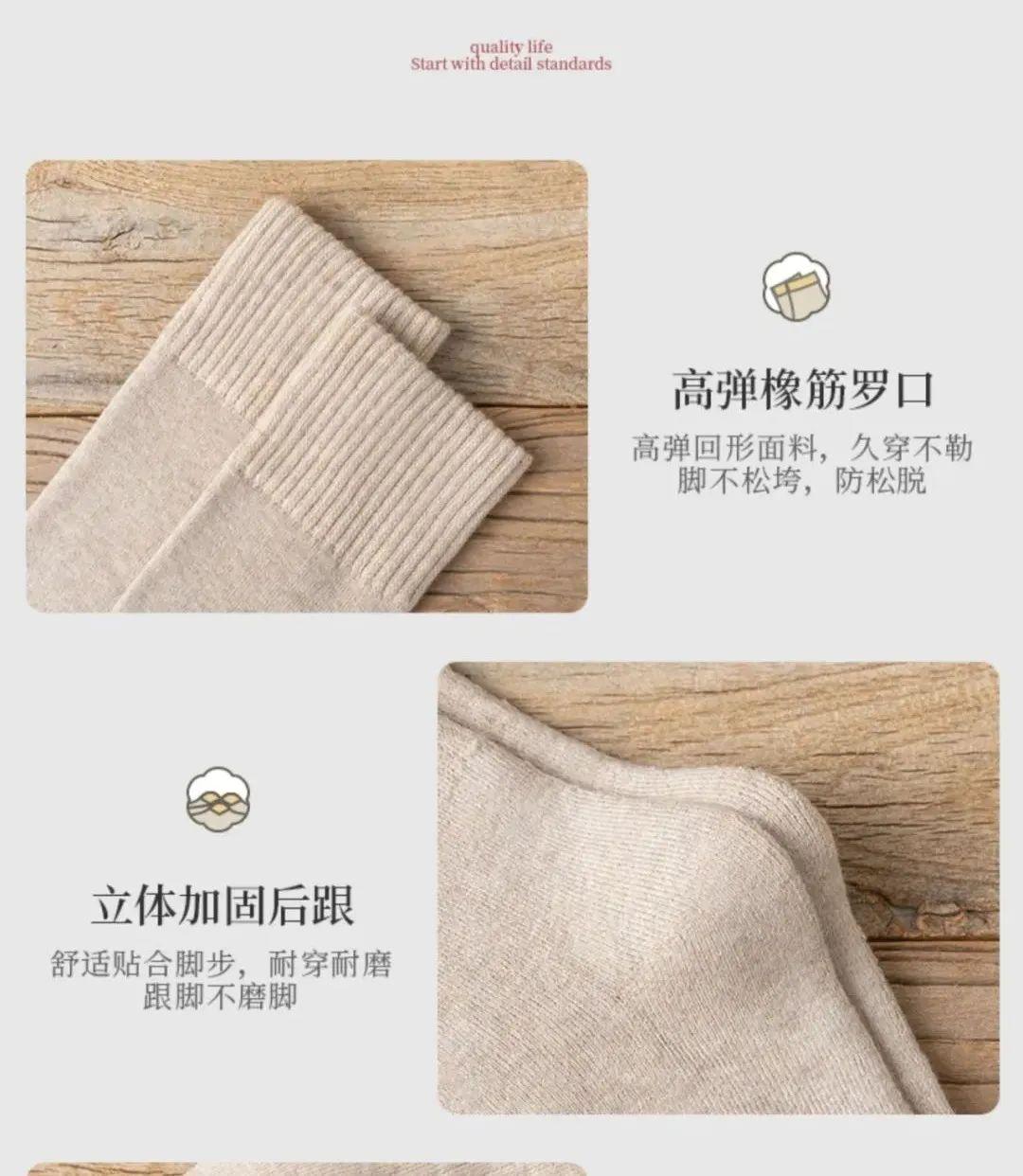 要不然像市面上那些化纤袜,不吸湿、不透气,活生生的憋闷出水泡、脚部问题,还会让双脚越穿越冷