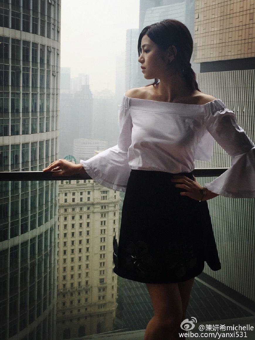 很多像陈妍希这样的身高不占优势还有点微胖的女生,千万不要选择拖地长裙或者长裤,拖地长裙容易给人一种把人压扁的感觉,既不合身还显得很累赘。