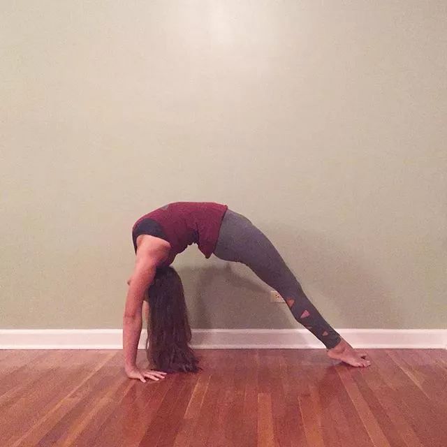 “轮式”瑜伽体式,双腿并拢,双臂自由向上张开,腰部向后弯曲直至双手与地面完全接触,双腿完全绷紧。轮式瑜伽体式在练习的时候可以将我们腰腹和双腿肌肉收紧到,还能够减掉副乳和拜拜肉。因为大腿前侧在减肥的过程中困难,所以向后弯曲拉伸的时候很容易出现损伤现象,姿势尽量标准,下腰的时候如果有人帮助就更好了!练习了这么久,要不要尝试一下倒立呢,看看果如何?