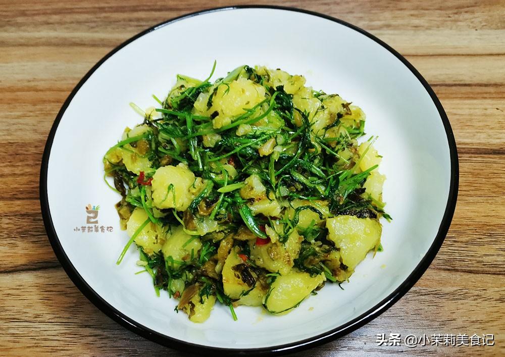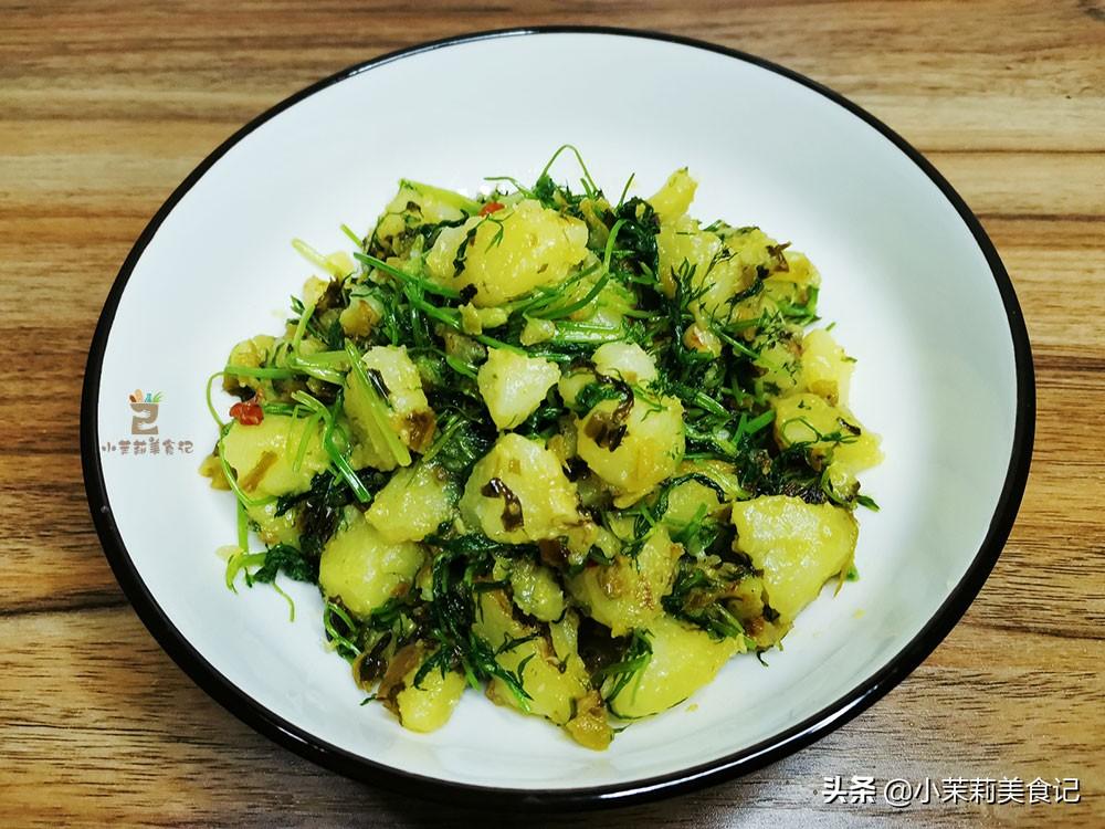 【食材准备】:土豆2块,茴香1把,腌好的雪菜1勺,葱花蒜末干辣椒适量,食用油少许