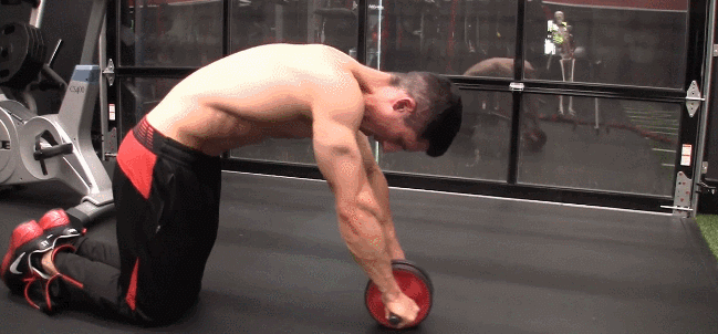运动时收紧腹部和核心肌群,双手反复使腹肌轮向前运动,当身体完全和地面平行时,保持动作1秒,使身体做大限度向前拉伸,然后缓慢将腹肌轮拉回起点,整个过程要保持身体的稳定。