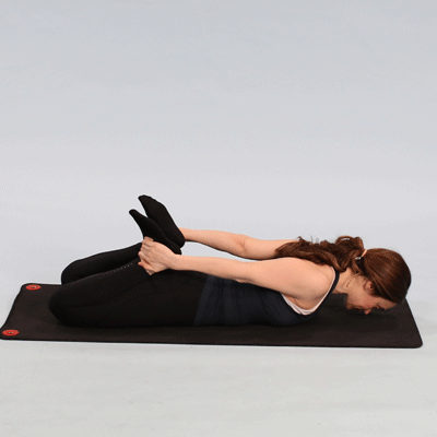 俯卧,屈双膝脚跟靠近臀部双手向后从脚外侧抓住脚踝大腿收紧,小腿向后向上抬高带动整个身体胸腔向后向上双肩远离耳朵,脊柱延展腹部微收,保持8-10个呼吸动作8、船式