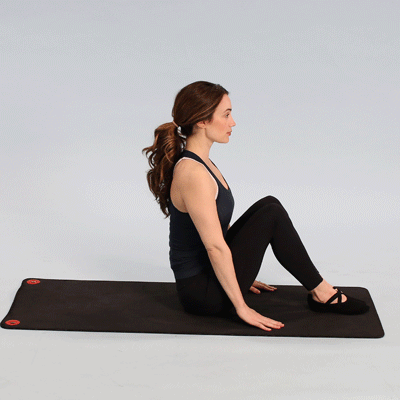 坐立准备,屈左膝脚跟靠近耻骨右腿放身体后侧,脚跟靠近臀部右手臂向后打开,弯屈手肘脚背放在右肘窝处,脚向身体靠近左手臂向后,双手十指交扣保持8-10个呼吸,换另一侧动作10、臀桥式