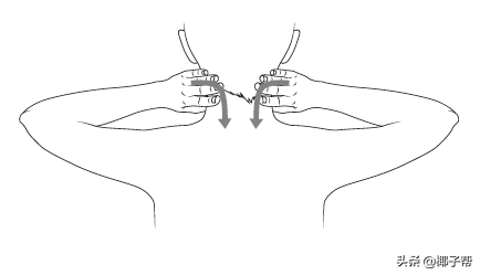 •将皮肤向脊椎伸展然后下降到脖子松开