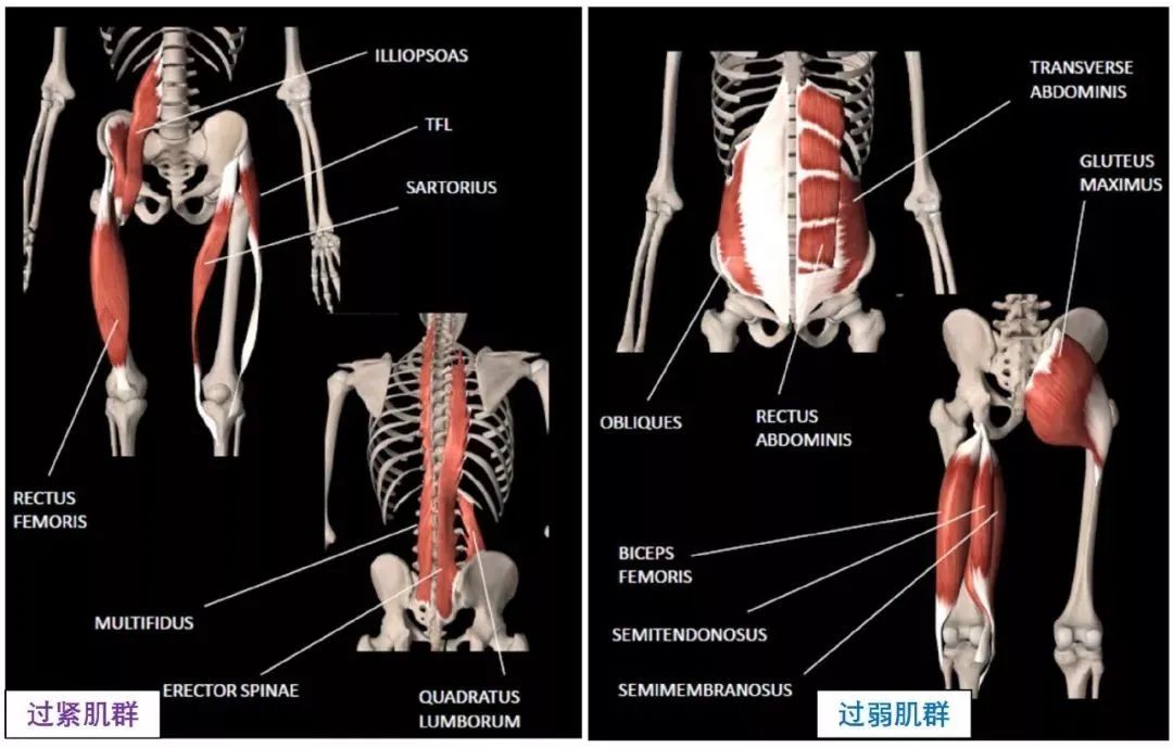 腹部、臀部肌肉力量不足;髋部屈肌、下背部肌肉过于紧张;6个动作改良骨盆前倾