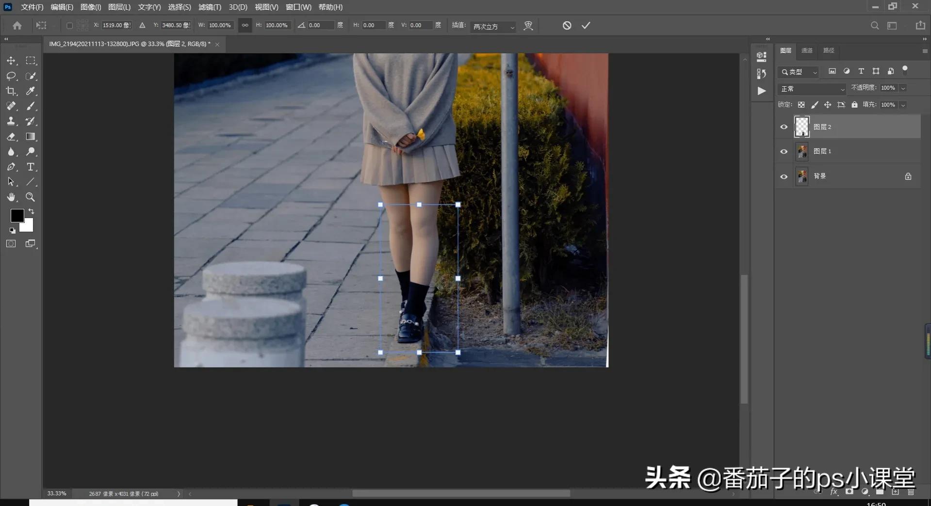 4、然后将腿部框选部分进行复制快捷键为“Ctrl+j”。
