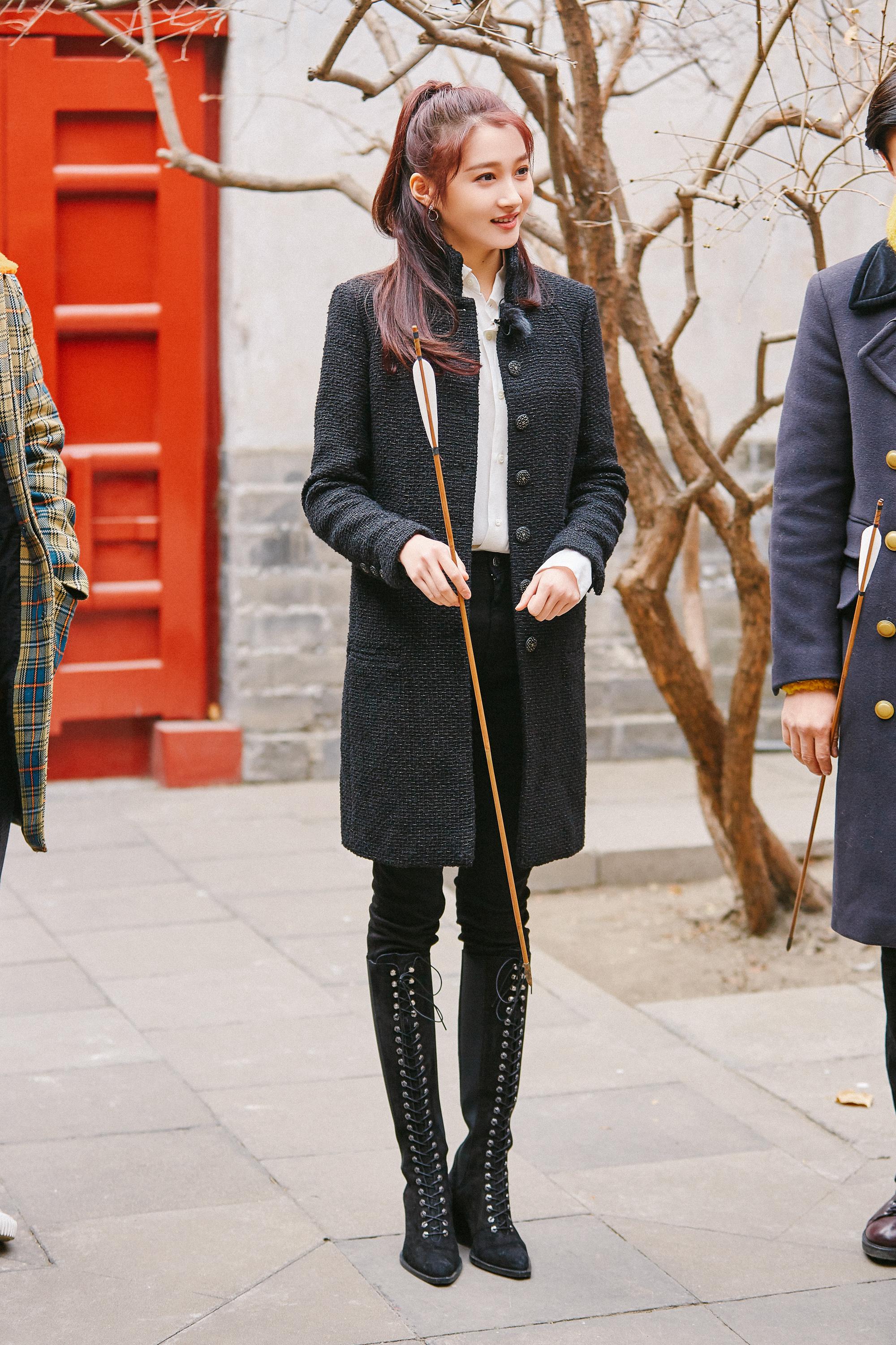 黑色大衣不是特别长的H型款式显帅气,搭配小黑裤和系带长筒靴,小细腿简直太吸睛。而扎个马尾辫就感觉活力十足了,帅酷的青春美少女,接地气了很多,看起来特别舒服。