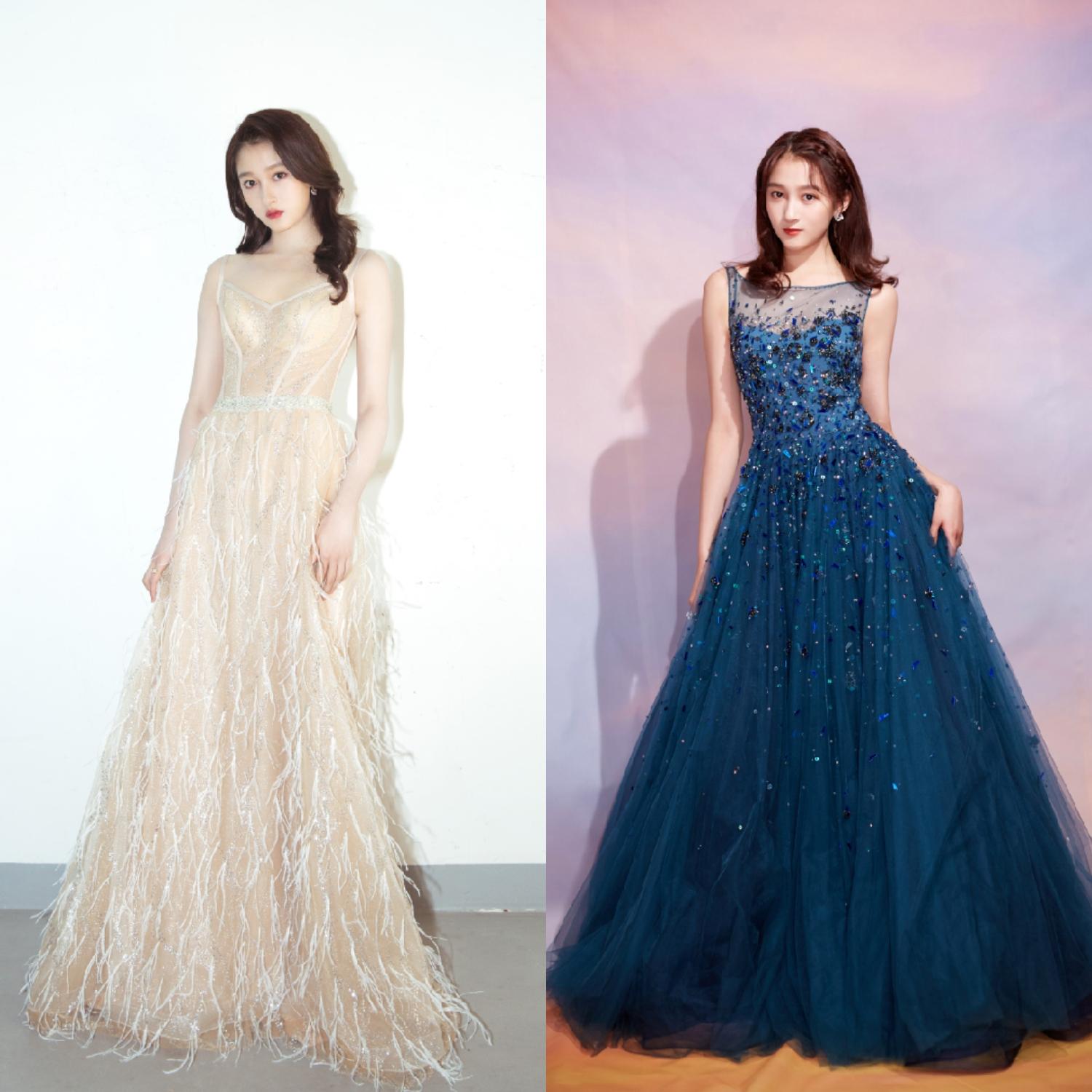 各种活动中关晓彤常选择的造型是这种经典的拖地长裙,经典高腰款式和大大的裙摆,加上173cm的身高,很能撑起来这种造型。但是这样的裙装却比较显端庄,对于21岁的关晓彤来说,有点失了青春活力感。