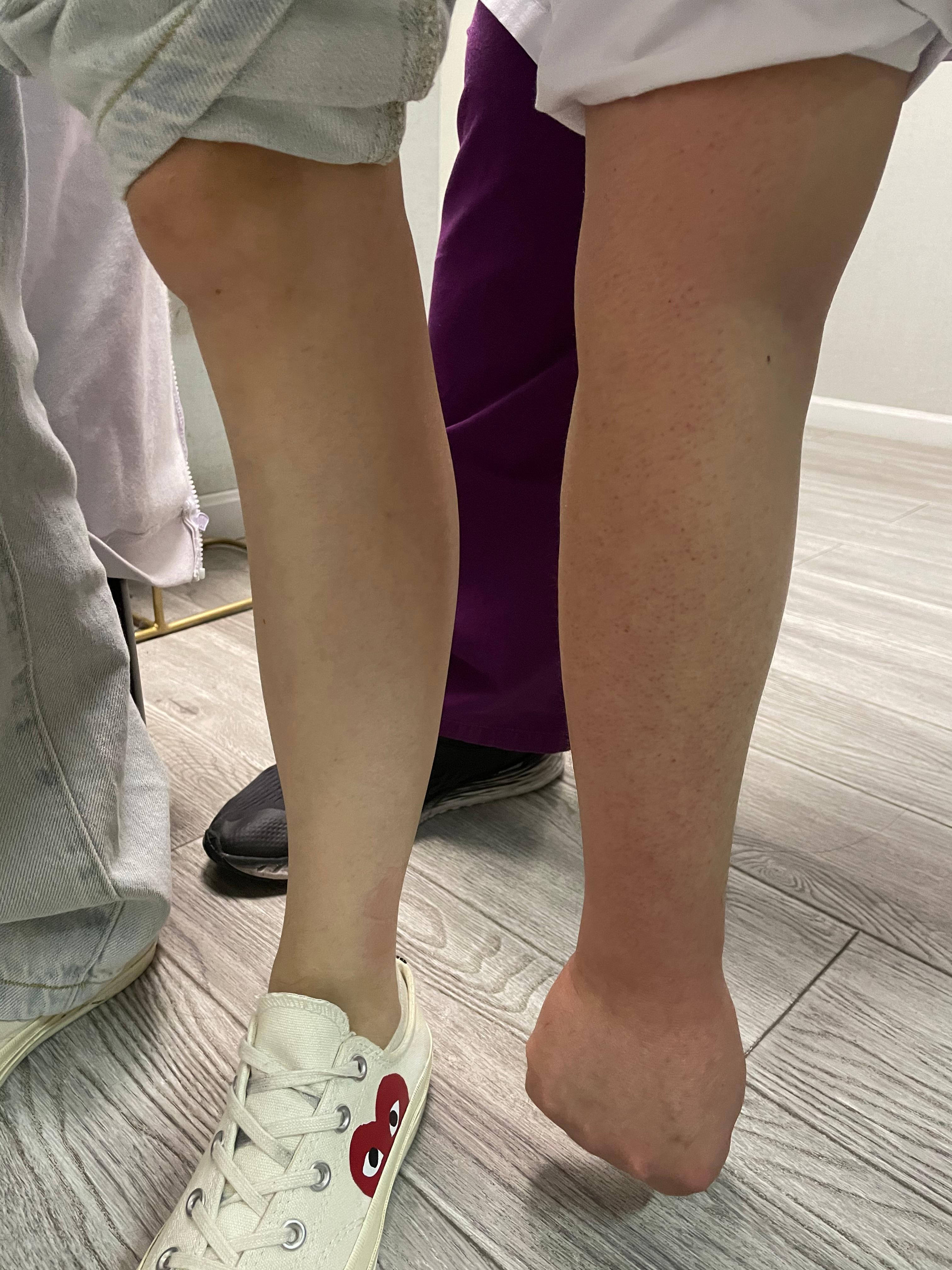 小赵小腿(左)与冀宇手臂(右)对比图。医生供图