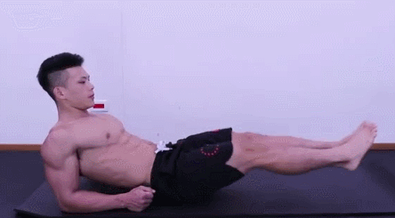 基础较好的健身者,在反向卷腹的同时, 加双臂摸膝动作,仍然保持下背部不离垫子,双臂伸直,这样可以训练到整个腹直肌。