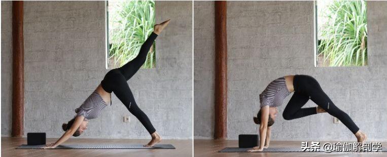 呼气,臀部向后向下再次进入下犬式8、单腿下犬式+向前迈步