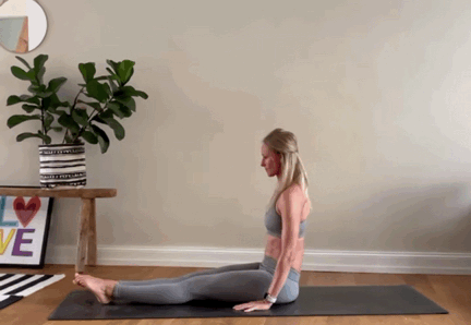 保持在上个动作的准备姿势呼气,收紧核心,脊柱绕圈顺时针、逆时针各绕动10圈动作3、