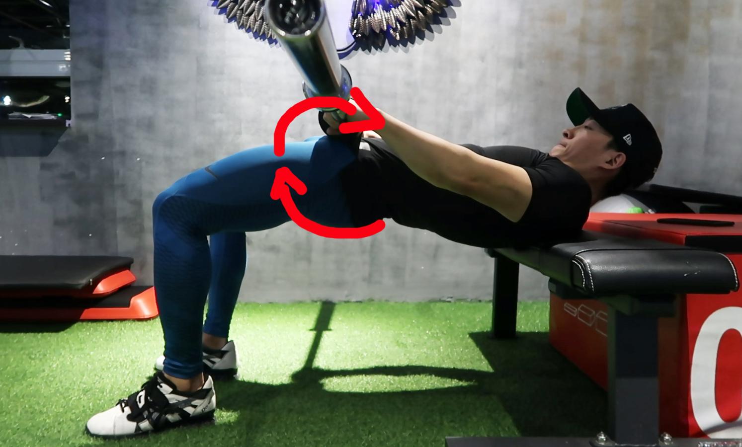 还有很多人在做臀冲时,习惯用伸展下背的动作,来代替臀部主动收缩。