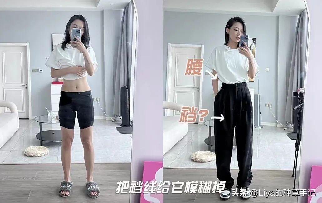 所以家人们,想要优化身材,牢记12字箴言:模糊裆线、遮住臀线、调高腰线!