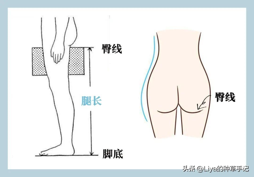下半身长度=从臀线(臀部与腿部的凹陷处)到脚底的距离。