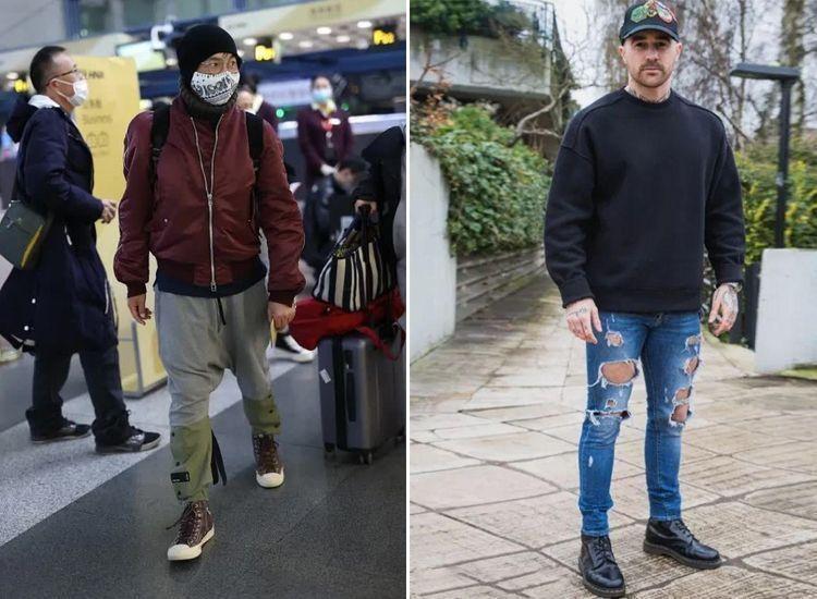 一、腿粗、屁股大的男生,远离这4种裤子01、低腰款、紧身款