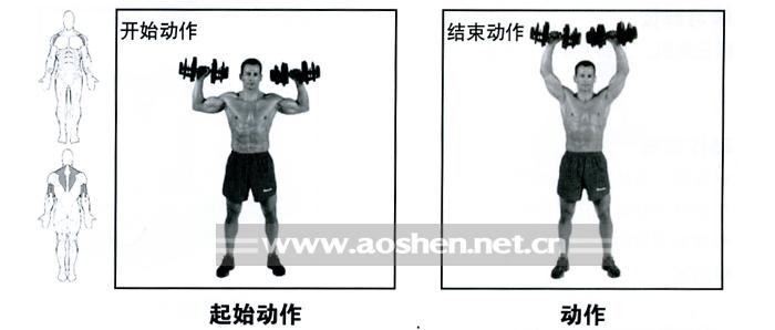 3、举起双臂时勿拱起下背部,保持脊椎固定。