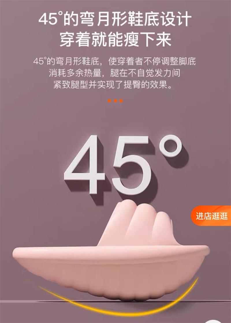 从某款产品的介绍上来看,鞋子高度为12厘米,鞋底后半部分上翘45度,穿上后沿着鞋底的弧度,下肢控制力度,可以前后摇摆、左右摇摆,坚持每天锻炼10分钟,就可以达到改良腿型的果。有消费者表示,穿上后有拉伸的感觉,还挺累的。不过其中不乏一些使用后出现意外的反馈,比如因为没控制好力度,从而扭伤、摔倒。记者浏览了多个商家发现,多数产品的宣传页面中并没有提及使用时的注意事项。在咨询中,某品牌客服提醒,不要当成普通拖鞋穿,建议初次使用时两手扶墙。
