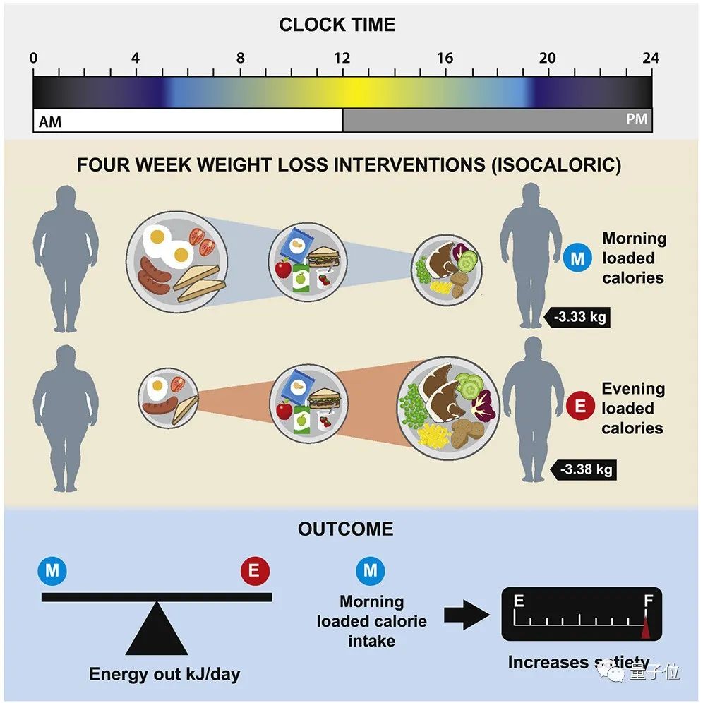 这也意味着,早餐和晚餐的相对份量对新陈代谢并没有显著影响,这也推翻了之前“在一天中不同时间进食会导致不同能量代谢”的说法。