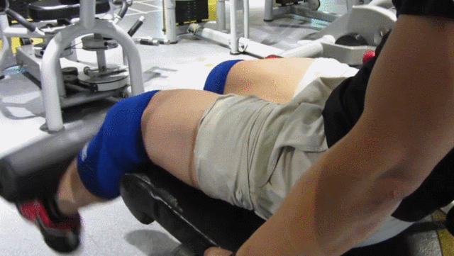 所以,我们在坐姿腿屈伸的动作过程的后期,因为力竭,我们会将腿快速地借力前伸,这样做就会立刻伤害我们的膝关节,我们就会开始感受到膝盖的疼痛或者是感受到膝关节承受着压力。