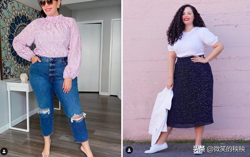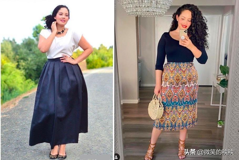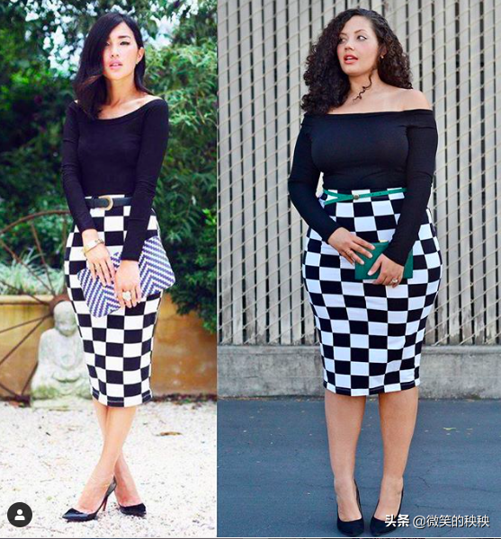 Tanesha Awasthi 还“艺高人胆大”地选择过同款搭配,和90斤的博主PK,因为拍摄角度和半裙的修饰果,两人的身材差异虽然不小,但感觉Tanesha Awasthi 的搭配果也还不错,蛮有丰韵美的。