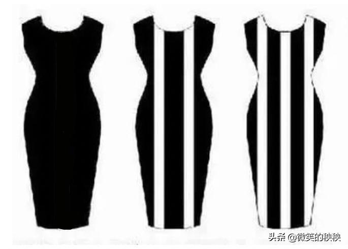 根据这个“视错觉”原理,在选择服装时想让身体的宽度更窄,有时,修身而有修饰果的裙装可能比松松大大的裙子更显瘦。