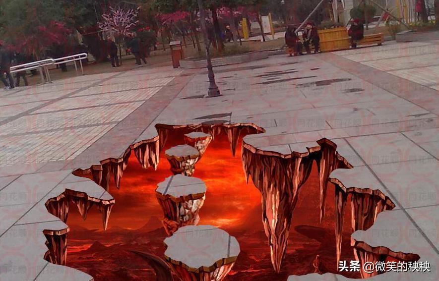 都说“眼见为实”,其实也不一定,我们的眼睛常常因为线条、阴影、颜色的引导而产生错误的感觉,这就是“视错觉”,譬如下图中的地板明明是平实的,但艺术家的3D画却让地面产生了地裂果。