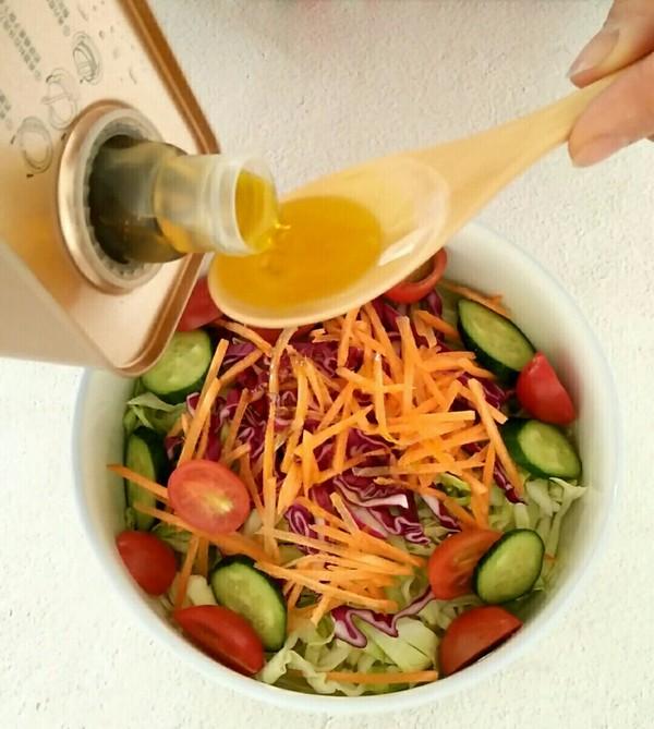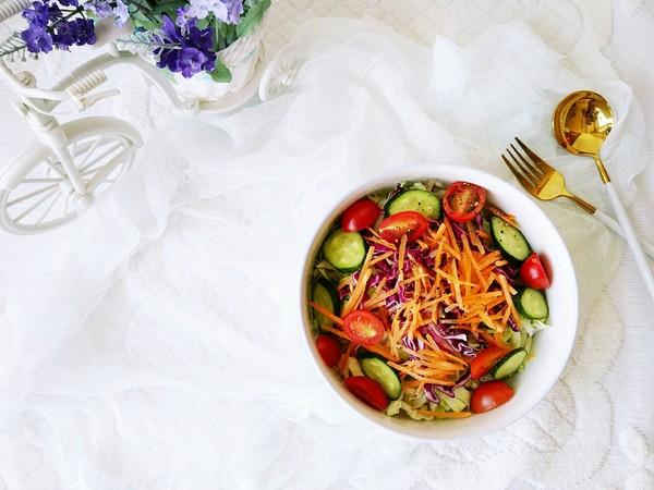 1、蔬菜沙拉是一道 以圆白菜、番茄、黄瓜等作为主要食材制作而成的美食。蔬菜沙拉是一种营养健康的饮食方法。首先它大多不必加热,这样会大限度的保持住蔬菜中的各种营养不至于被破坏或流失。