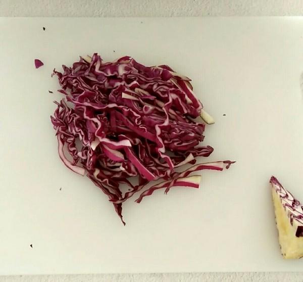 3.紫甘蓝同样切丝入盘