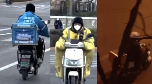 骑手在门口来来去去