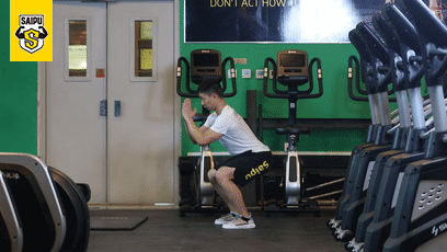 2:进行交替的后撤弓步蹲,双手顺势向前保持好稳定,