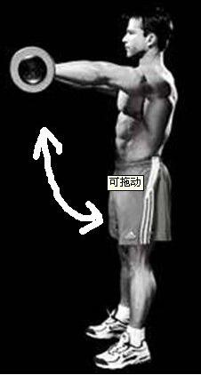 过程:肘部向上弯曲,上拉提高哑铃位置。保持上臂垂直于身体。返回时,保持手臂稍微弯曲。
