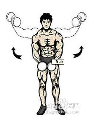 过程:向两侧提高双臂,知道上臂与地面平行。整个锻炼过程中,保持肘部的弯曲。