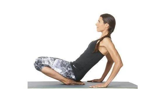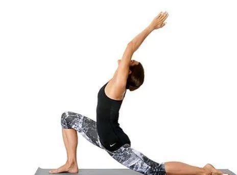 双脚踩地,脚跟压地,腹部内收上提,双手撑地保持肩膀内收上提,眼睛看肚脐保持1分钟2.新月式