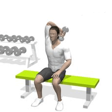 这个动作锻炼的方式好的就是坐着,可以防止肢体其他部位接力,练习时后背挺直,双手握紧哑铃竖直拿起,手肘上的小臂向后脑勺弯曲,手肘后半部分保持不动,用力集中于肱三头肌部位,控制练习的速度,切记要慢,保持肌肉的紧张,下放的部位要到后脑勺下一点,不要只到达后脑的部位就恢复。同样的练习中要保持呼吸节奏和注意力的集中。