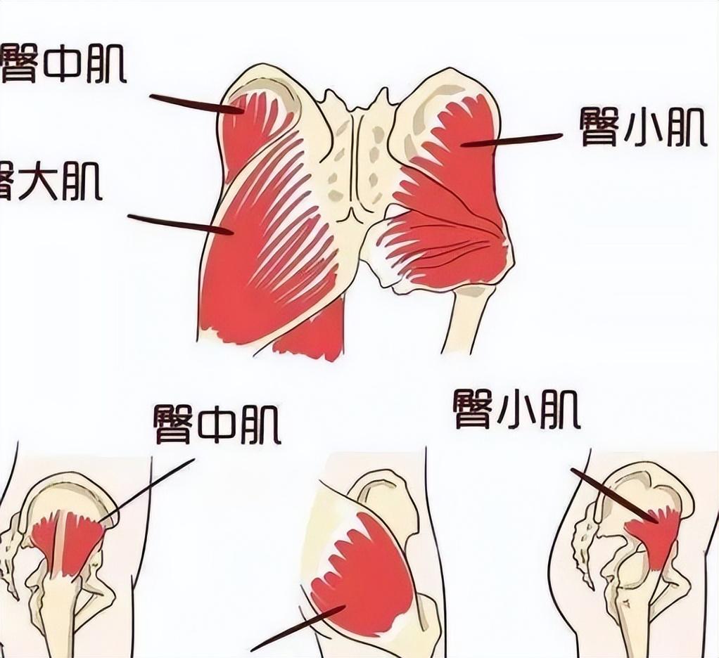 1、了解臀部肌肉结构以及相关动作从臀肌结构上来看,整个臀肌由臀大肌、臀中肌以及臀小肌三块肌肉组成: