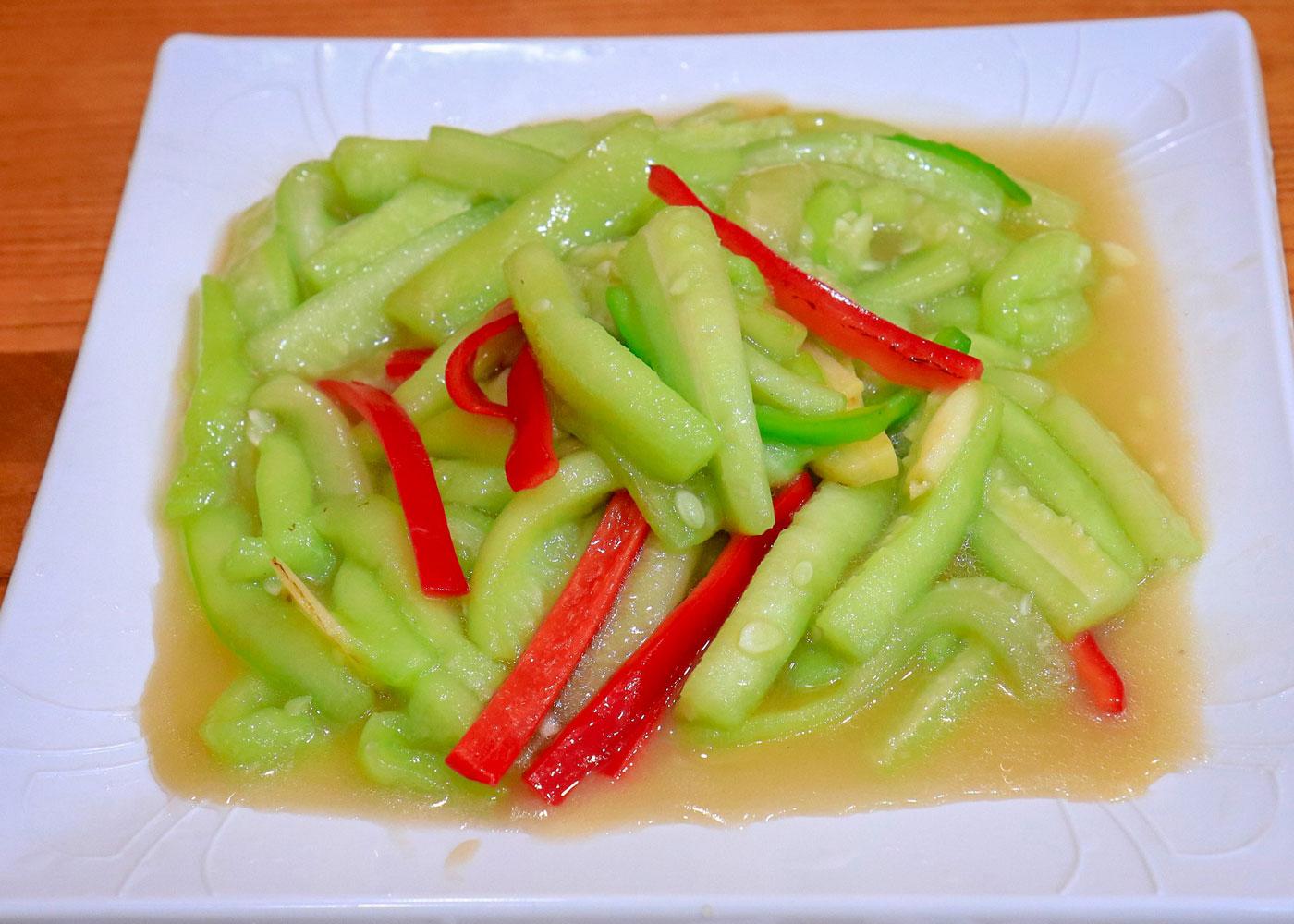 第三、【蒜片丝瓜】丝瓜的膳食纤维素和维生素含量丰富,热量极低,减肥、降脂还能解暑、消渴。