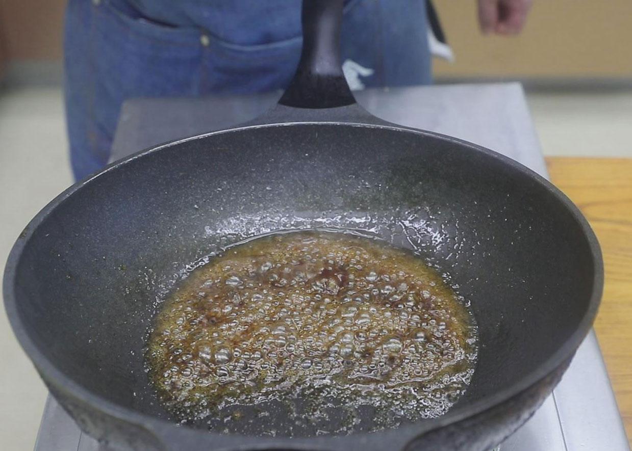 再舀进去小半勺清水,大火多熬一会, 把汁熬浓 ,熬香。熬好以后,把里面的姜丝 ,花椒粒打出去。