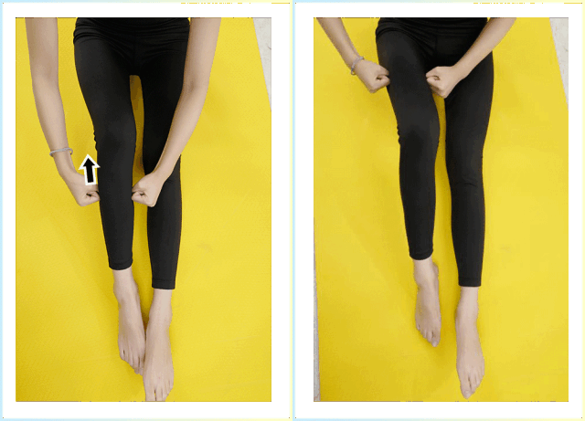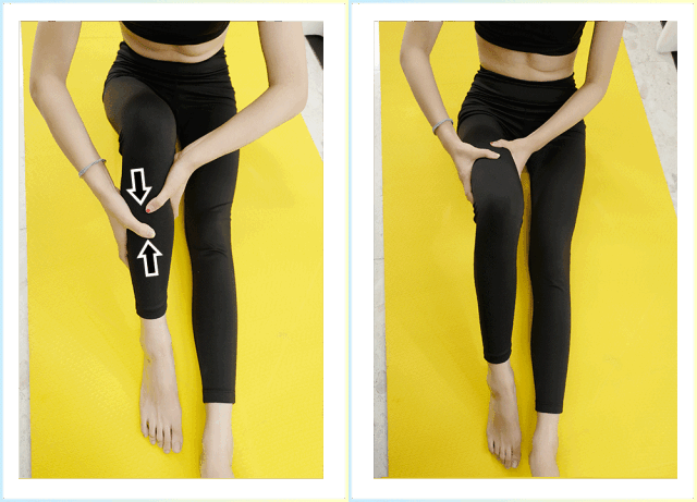 按摩小腿肌肉:自然屈腿,在小腿粗硬的地方用拇指按压,向两侧推开。重复15-20次