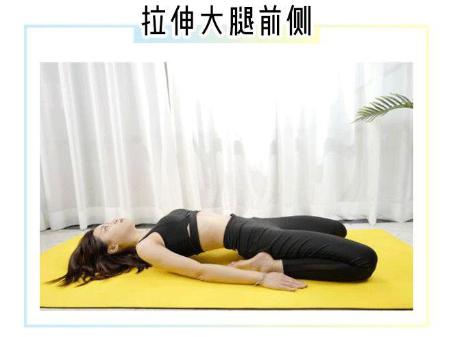 这个动作会感觉到大腿前侧强烈的拉伸感,如果腰部紧张可以选择单腿拉伸的方式
