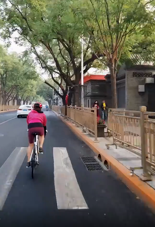 孙悦表示自己在用这种户外运动的方式来为祖国庆祝生日,因为节日氛围浓厚,孙悦还和同行的路人畅聊了一路。