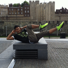 2、该动作要慢慢地让腹部肌肉发力带动手臂和腿上抬。